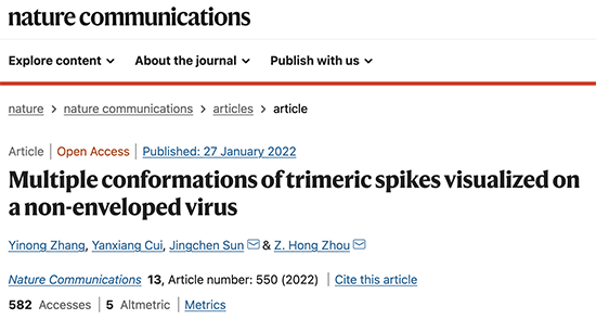 2022年1月27日,动物科学学院博士生张以农在学术期刊Nature Communications上发表题为“Multiple conformations of trimeric spikes visualized on a non-enveloped virus”的研究论文(论文链接:https://www.nature.com/articles/s41467-022-28114-0)。该论文首次解析了家蚕质型多角体病毒(BmCPV病毒)spike蛋白的高分辨率三维结构。kaiyun体育手机版登录官网动物科学学院为第一完成单位(亚热带桑蚕种质资源保护与安全生产工程技术研究中心/广东省农业动物基因组学与分子育种重点实验室),博士研究生张以农为第一作者,这也是张以农2019年以并列第一作者在Nature Structural & Molecular Biology上(https://www.nature.com/articles/s41594-019-0320-0)发表题为“Conservative transcription in three steps visualized in a double-stranded RNA virus”文章的后续研究。