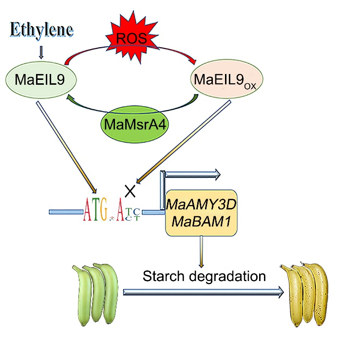 图1 MaEIL9氧化还原修饰参与香蕉果实成熟的模型图