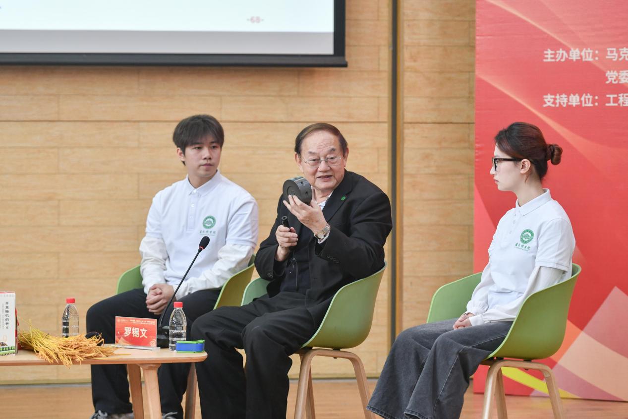 在思政体验馆报告厅的访谈现场,罗院士用生动的案例、详实的数据和专注农机创新50年的亲身经历回答了同学们关于“为何开展农机研究”“智能农机有何硬核科技”“为什么要建无人农场”“团队攻坚克难的制胜法宝是什么”等问题,为学生带来了“春风化雨,润物无声”的教育和启迪。