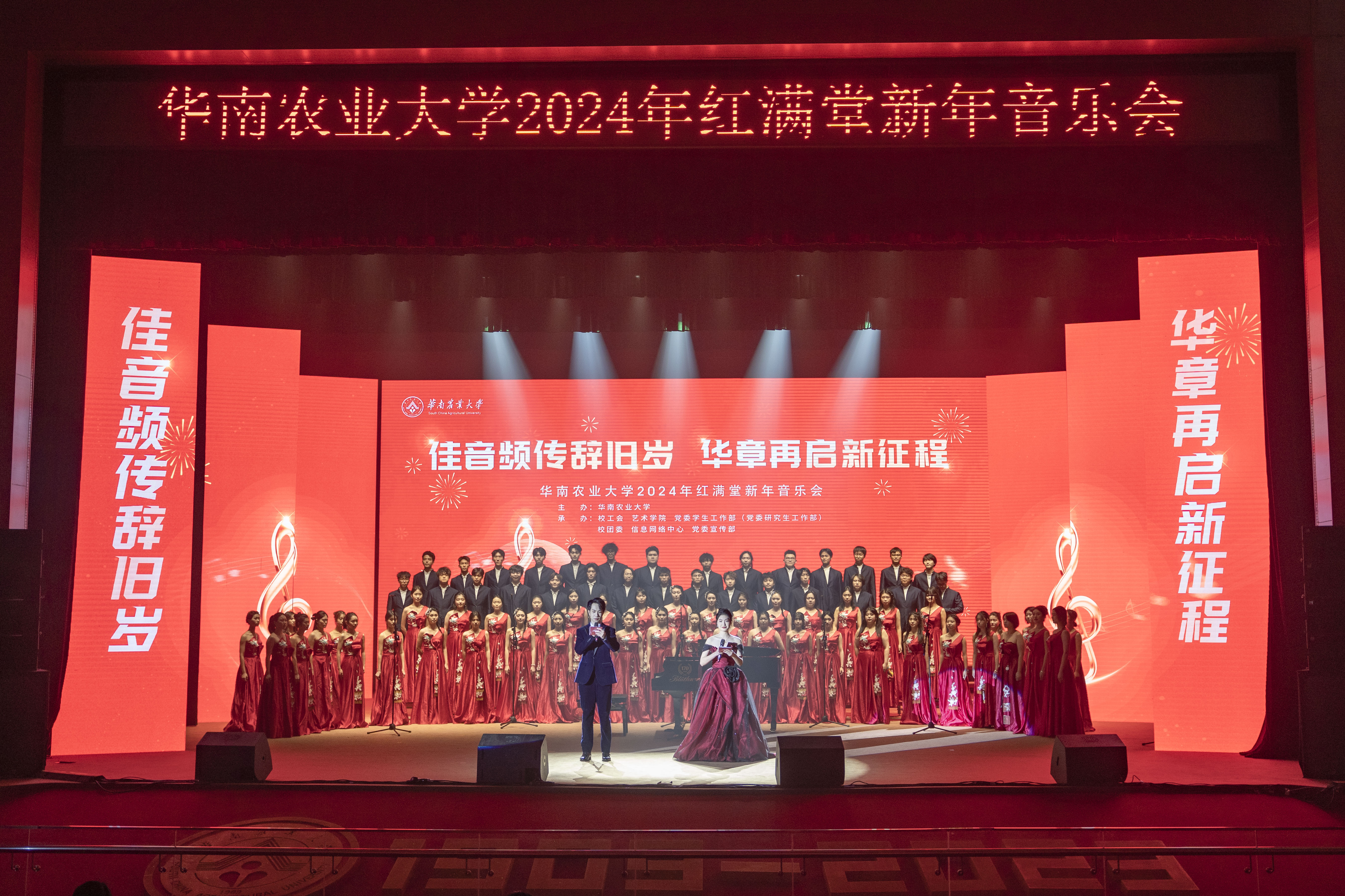 12月28日晚,丁颖礼堂内灯光璀璨,管弦齐鸣,kaiyun体育手机版登录官网2024年红满堂新年音乐会如期奏响。校党委书记李凤亮、校长薛红卫、中国科学院院士刘耀光、学校领导班子成员同师生代表1000余人欢聚一堂,共享视听盛宴。